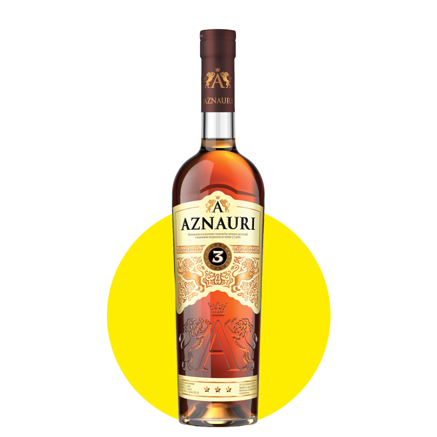 Бренді Aznauri 3 роки 0,5 л 40 % — це класичний алкогольний напій, виготовлений з відбірних виноградних спиртів і витриманий **не менше трьох років** у дубових бочках, що надає йому насиченого смаку та гармонійного аромату. Під час витримки напій набуває характерного золотистого кольору з відтінками карамелі та дуба, а аромат розкривається медовими та сухофруктовими нотами, створюючи м’який і оксамитовий післясмак при подачі при температурі 18–20 °C. Такий бренді чудово підходить для вживання в чистому вигляді після вечері або як основа для класичних коктейлів, гармонійно поєднуючись із десертами чи сигарами. Вироблений за класичною технологією з якісної сировини, Aznauri 3 роки відображає баланс між традицією й доступністю, роблячи його популярним вибором серед любителів витриманих міцних напоїв.