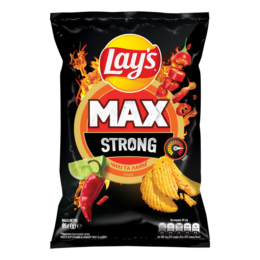 Чипси "Lay's (Лейс) Max Strong" зі смаком чилі та лайму 120г