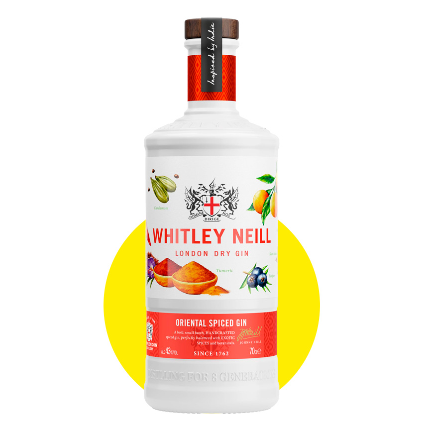 Whitley Neill Oriental Spiced Gin - британський джин преміум-класу з чарівним смаком східних спецій. Він зроблений з рослинних компонентів, таких як ялівець, апельсин, коріандр, імбир, куркума, перець чилі, шафран, зірчастий аніс, кмин, лимон і перець горошком... Створення цього джина було натхненне подорожами Джонні Ніла на Індійський субконтинент наприкінці 1990-х років. Він дистильований з акцентом на екзотичні смаки та аромати Сходу. Джин виконаний у стилі London Dry. Він блискуче вписується в напій із джин-тоніком. Пляшка закривається корковою пробкою. Колір: кришталевий, прозорий. Аромат: насичений, східні спеції, коріандр, кардамон, ялівець. Смак: злегка пряний, цитрусові, ялівець, кмин, лимон, перець. Післясмак: середньої тривалості, пряний, імбир, фрукти, східні спеції.