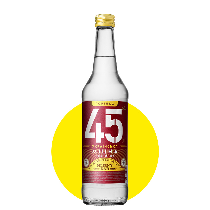 Горілка "Українська" Класична міцна 0,5 л 45% — це справжній символ національних традицій та якості. Виготовлена за класичною українською рецептурою з використанням відбірного зернового спирту високої очистки та кришталево чистої води, ця горілка вирізняється м’яким, але водночас насиченим смаком із легкою хлібною нотою. Підвищена міцність 45% додає напою характеру та глибини, роблячи його ідеальним вибором для святкового столу або приготування авторських настоянок. "Українська" Класична міцна чудово подається охолодженою до традиційних закусок — солінь, м’яса та домашніх страв.