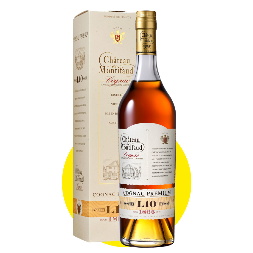 Коньяк Chateau de Montifaud L10 Преміум — вишуканий французький коньяк з регіону Гран Шампань, витриманий у дубових бочках і створений за сімейними традиціями виробників із багатовіковою історією. Має насичений бурштиновий колір, складний аромат з нотами ванілі, сухофруктів, дубу та легкого пряного відтінку. Смак глибокий, м’який і гармонійний, із тривалим елегантним післясмаком. Випускається у преміальній подарунковій коробці.