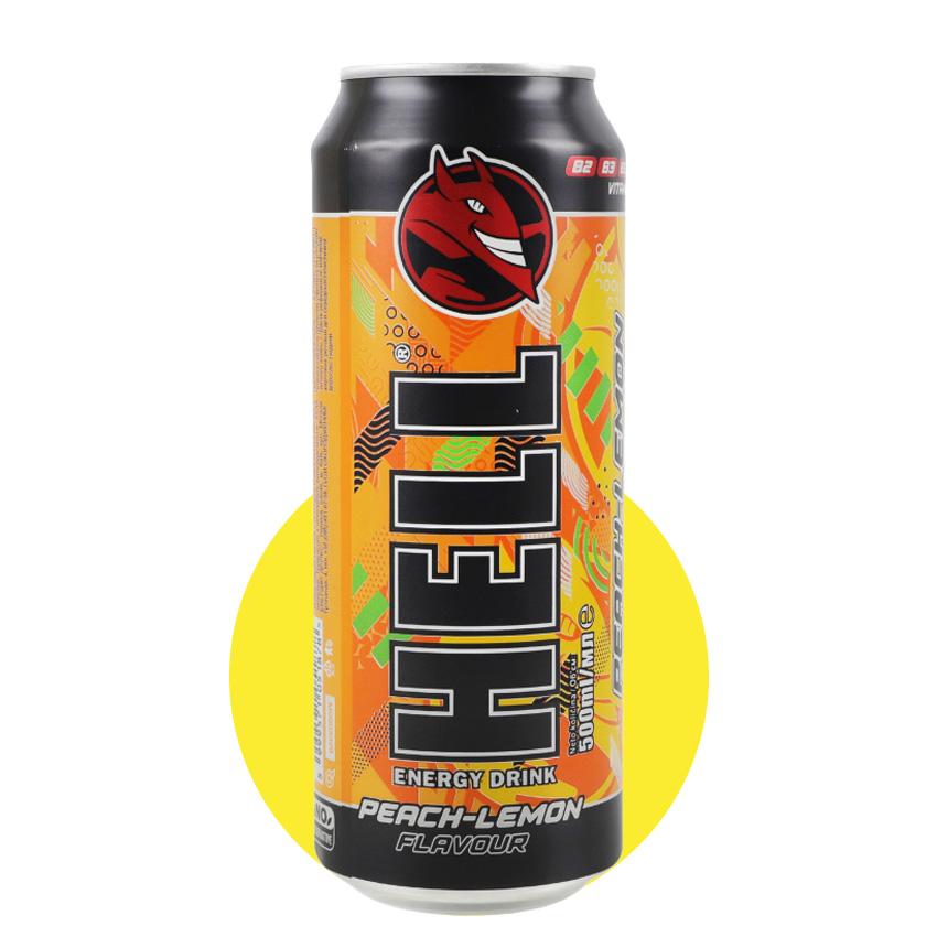 Напій енергетичний б/а "HELL" Peach-Lemon 0,5л з/б