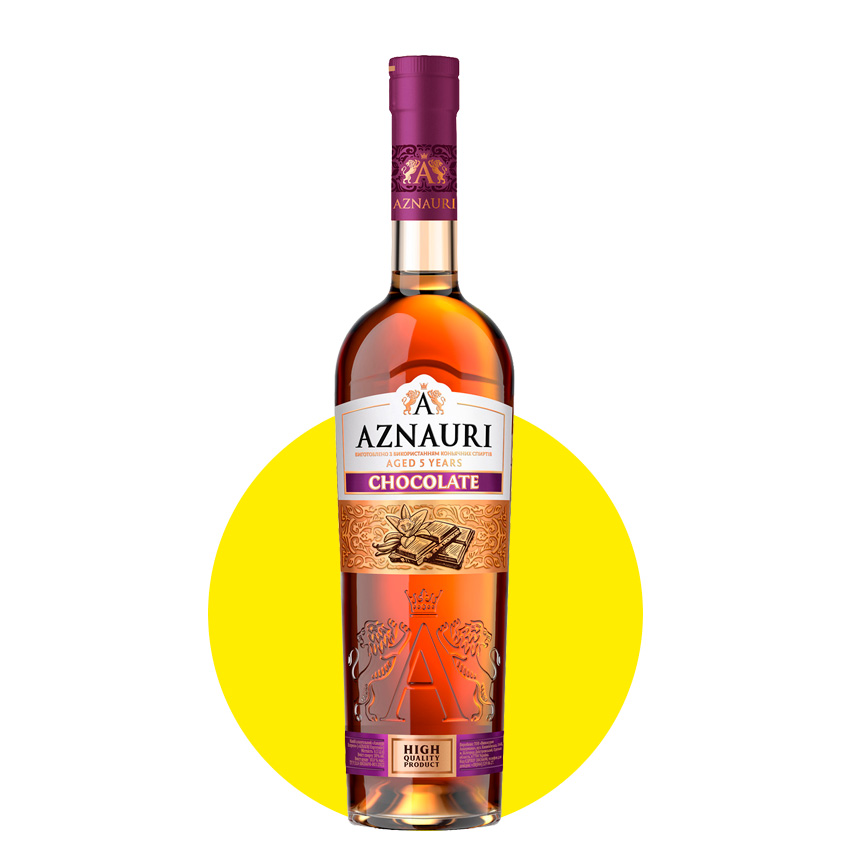 Напій спиртний Aznauri Chocolate De Luxe 5 років 0,5 л 30 % — це витончений алкогольний напій, створений на базі витриманих коньячних спиртів не менше 5 років, що доповнені цукровим сиропом, кольором карамелі та екстрактами шоколаду й какао, що надають йому приємних солодких і шоколадних нот.