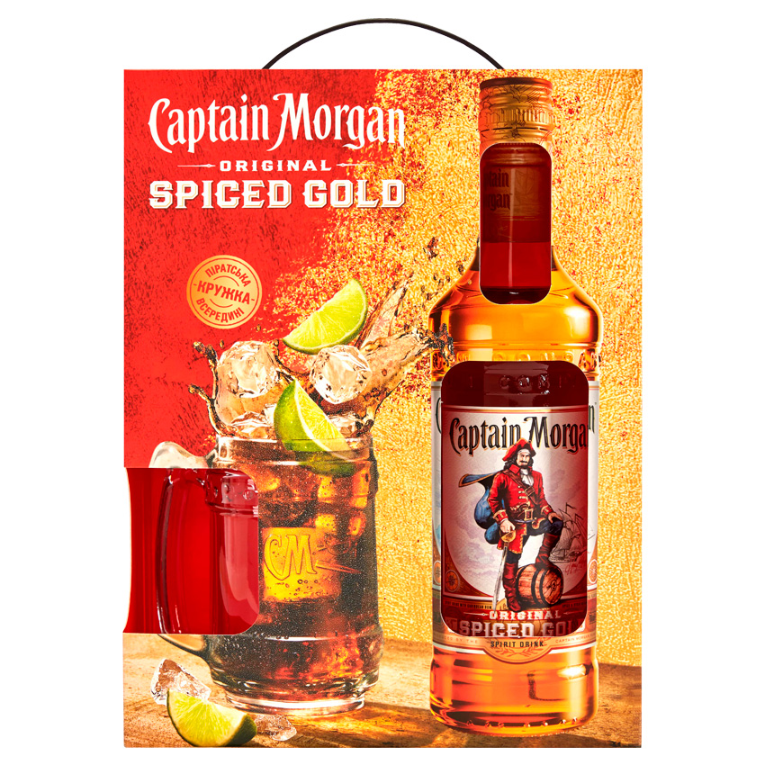 Набор рома Captain Morgan Spiced Gold 0,7л 35% + кружка - это идеальный подарочный комплект для ценителей пряного рома, сочетающий настоящий алкогольный напиток с ванильно-пряным профилем и стильную кружку для подачи или дегустации. Captain Morgan Spiced Gold – легендарный ромовый напиток на основе карибского рома с ароматами специй и ванили, отличающийся мягким, сладковатым вкусом с нотами карамели и теплого букета пряностей, а крепость 35% создает сбалансированную основу как для употребления в чистом виде, так и. Набор упакован как подарок, что делает его отличным выбором для праздничных событий, вечеринок или подъема в знак внимания близким и друзьям. Сопроводительная кружка добавляет набор функциональности – ее можно использовать для подачи напитка со льдом, смешивания коктейлей или как стильный аксессуар для бара.