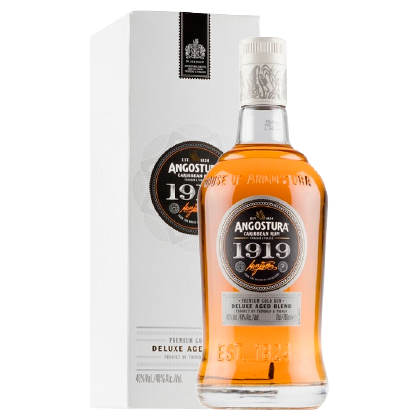 Премиальный продукт Ром Angostura 1919 от производителя из Тринидада и Тобаго, который создан как исключительная смесь нескольких видов дистиллятов на основе мелассы, не менее 8 лет в обожженных дубовых бочках из-под бурбона. Этот ром имеет выдержанный золотисто-янтарный цвет. Аромат совмещает ноты карамели, ванили, шоколада и дубовой специи. Вкус мягкий и плотный: карамель, нуга, тропические фрукты и сухофрукты со спокойным, теплым послевкусием.