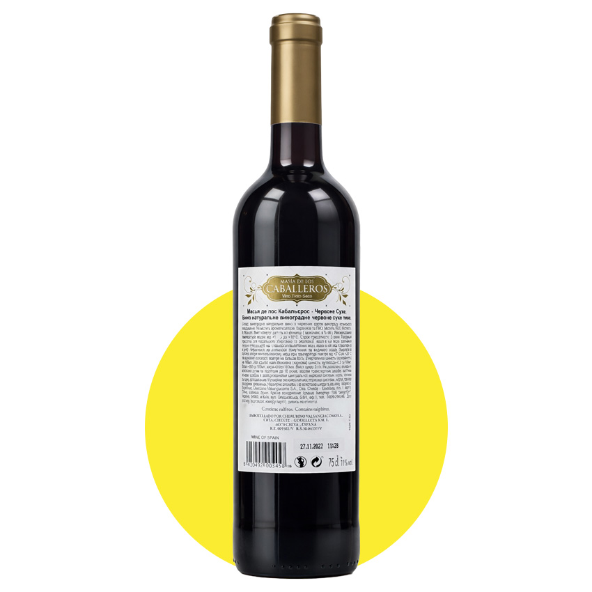 Вино "Masia De Los Caballeros Tinto Seco" – это красное сухое вино с содержанием алкоголя 11%. Изготовлено из отборного красного винограда, выращенного в Испании. Обладает насыщенным рубиновым цветом и ароматом черных ягод, слив и легких ноток специй. Вкус полный, с мягкими танинами и продолжительным послевкусием. Хорошо сочетается с мясными блюдами, пастой и сырами. Рекомендуется подавать при температуре 16–18°C.