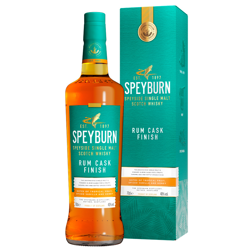 Speyburn Rum Cask Finish - это односолодовый интригующий шотландский виски, который сочетает в себе классический фруктовый стиль Спейсайда с экзотическими сладкими нотами, полученными благодаря финишной выдержке в бочках из-под карибского рома. Поставляется в стильной коробке. Финишная выдержка в бочках из-под рома добавляет к характерным фруктовым нотам Speyburn теплое наслаждение и тропические нюансы. Виски имеет золотистый цвет с янтарными бликами. Аромат Speyburn Rum Cask Finish сладковатый, раскрывается нотами спелых яблок и груш, дополненными оттенками карамели, ванили, тропических фруктов (банан, ананас) и легкими пряными нюансами. Вкус виски мягкий и округлый. Ощущаются фруктовые тона, переплетающиеся с нотами ириски, меда, тропических фруктов и легкими нюансами дуба и специй. Послевкусие средней продолжительности, теплое и сладковатое, с приятными фруктовыми и ромовыми оттенками. Рекомендуется употреблять в чистом виде, с добавлением льда или коктейлей.