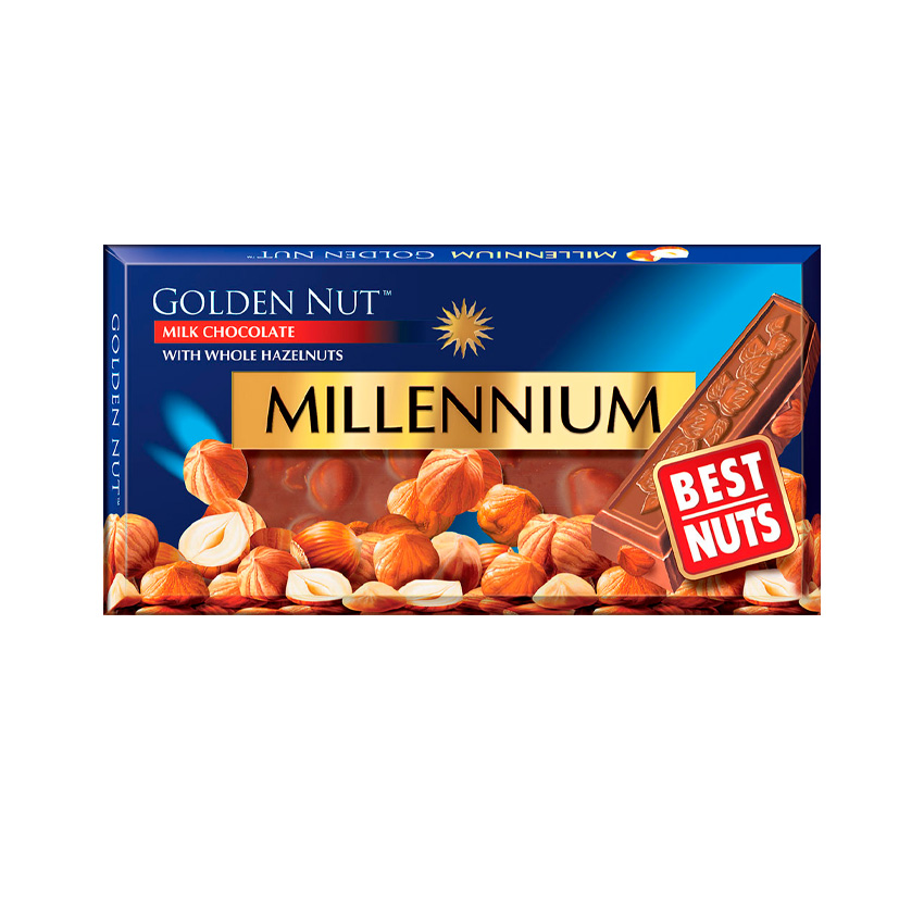 Шоколад «Millennium Gold» молочний з цілим фундуком 100 г — це вишуканий десерт для поціновувачів класичного молочного шоколаду з горіховими нотками. Ніжна шоколадна основа гармонійно поєднується з цілими ядрами фундука, створюючи насичений смак та приємну текстурну різноманітність у кожному шматочку. Ідеальний для перекусу, подарунка або як частина десертного столу, цей шоколад дарує поєднання високоякісного молочного шоколаду та ароматних горіхів у компактній упаковці 100 г. Купити шоколад «Millennium Gold» з цілим фундуком варто тим, хто цінує багатий смак, натуральні інгредієнти та солодку насолоду на кожен день.