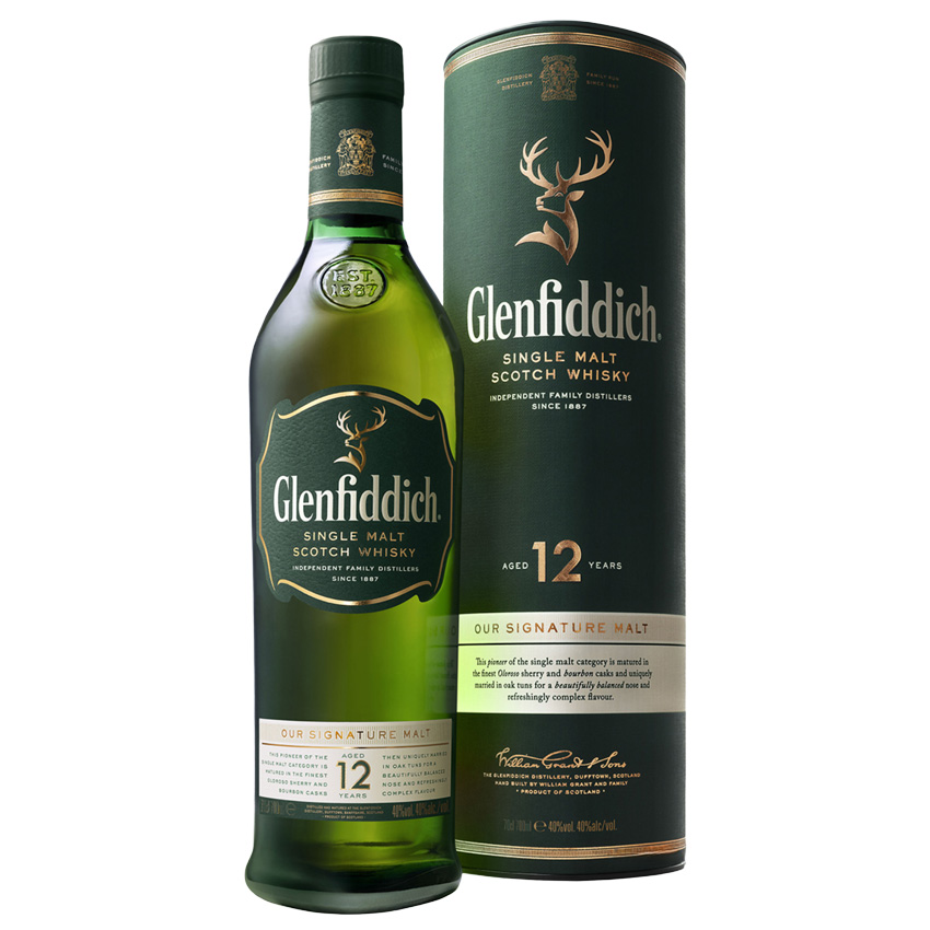 Класичний односолодовий шотландський віскі зі Спейсайду, який уособлює традиції та бездоганну якість легендарної винокурні Glenfiddich. Напій витримується не менше 12 років у дубових бочках з-під американського бурбона та іспанського хересу, завдяки чому має гармонійний аромат із нотами груші, яблука, ванілі та легкого дуба. Смак м’який, збалансований, з відтінками солоду, меду та свіжих фруктів, а післясмак чистий і злегка солодкуватий. Віскі Glenfiddich 12 років ідеально підходить як для вживання в чистому вигляді, так і з льодом або в класичних коктейлях.