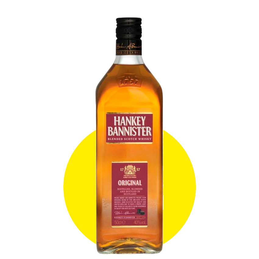 Віскі Hankey Bannister 0,5 л 40% — це витончений купажований шотландський віскі з багатою історією та впізнаваним м’яким смаком. Напій вирізняється гармонійним поєднанням солодових і зернових спиртів, що створює збалансований аромат із легкими нотами ванілі, меду та стиглих фруктів. Смак округлий і делікатний, з приємною солодкістю, тонкими відтінками спецій і ледь відчутною димністю, що плавно переходить у теплий, тривалий післясмак. Ідеально підходить як для вживання у чистому вигляді, так і для створення класичних коктейлів. Стильний та універсальний вибір для поціновувачів якісного віскі.